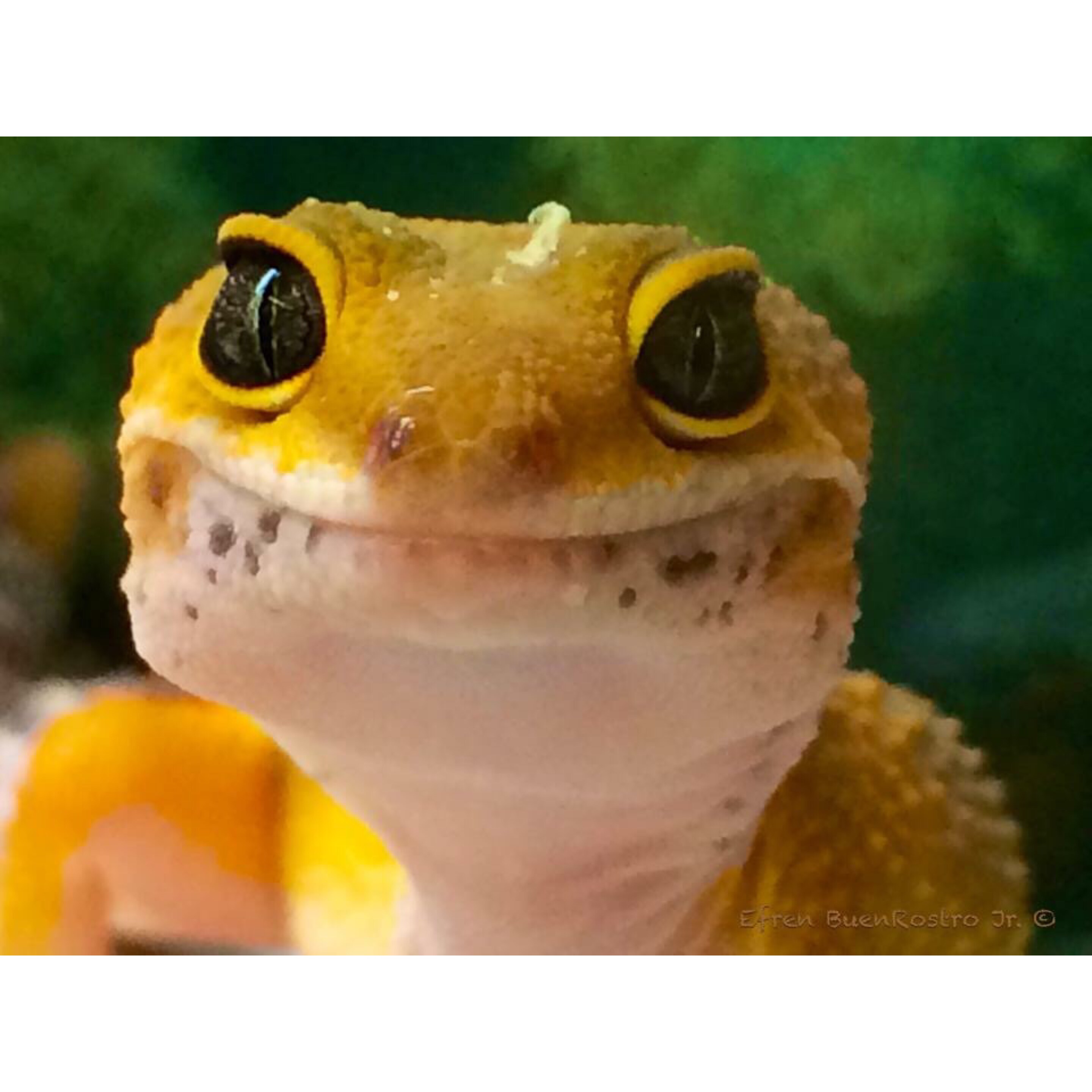 The lizard has no idea that something is on top on its head.